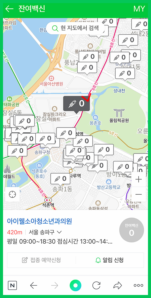 현재는 잔여백신이 없기 때문에 0으로 숫자가 표현 되어 있습니다.