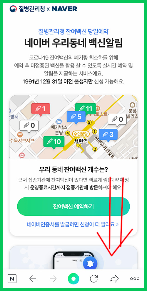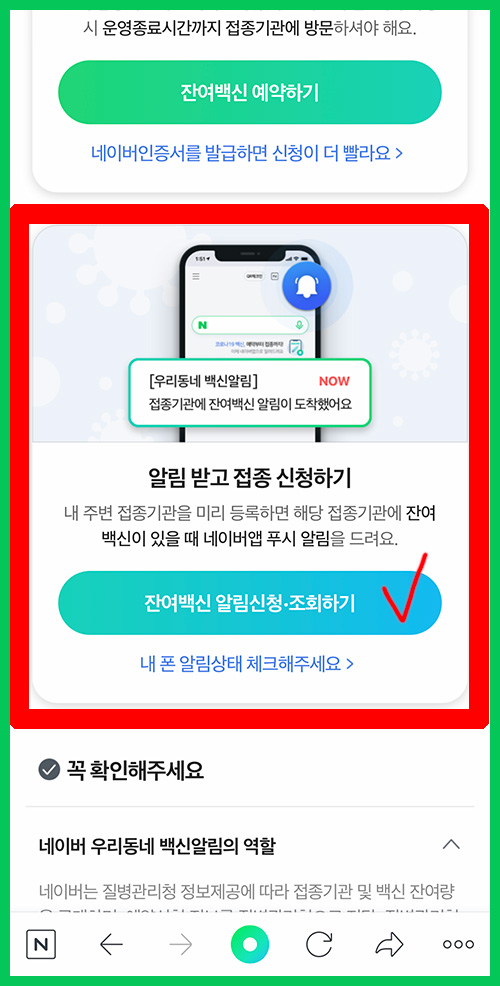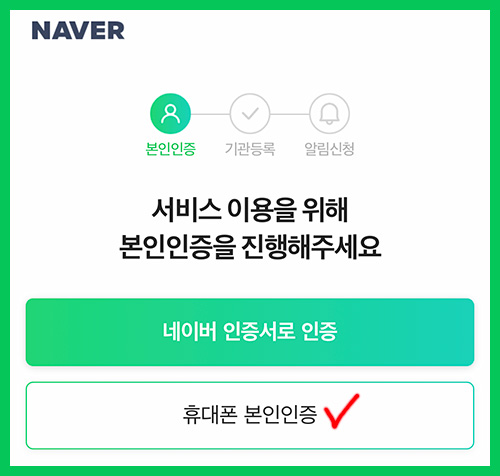 알림을 받거나 인증 때문에 결국 앱에서 신청을 해야해서 번거롭지 않도록 처음부터 네이버앱에서 시작해주세요.