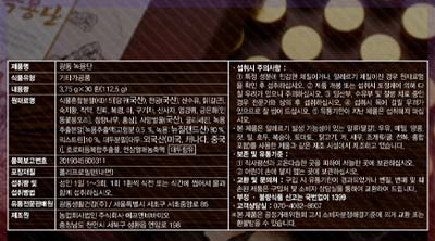 부 원료로는 침향과 홍삼, 인삼의 열매만을 골라 만든 농축액, 참당귀, 칡뿌리, 천궁, 산수유, 엉겅퀴, 침행, 사양벌꿀 등 몸에 좋은 17종류가 다양하게 함유되어 있어 있습니다.