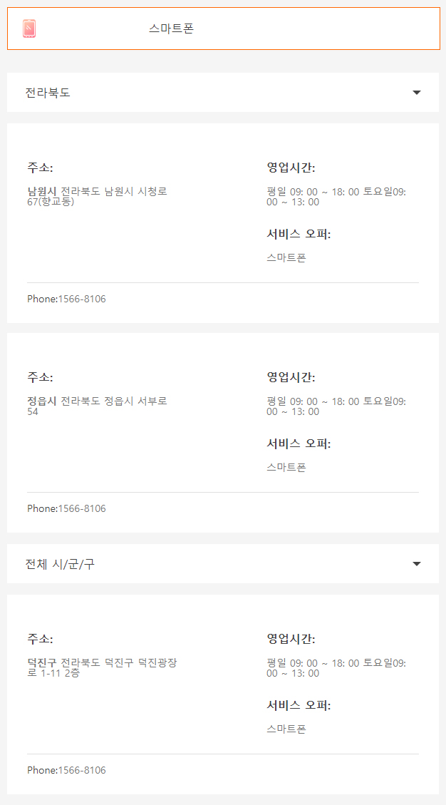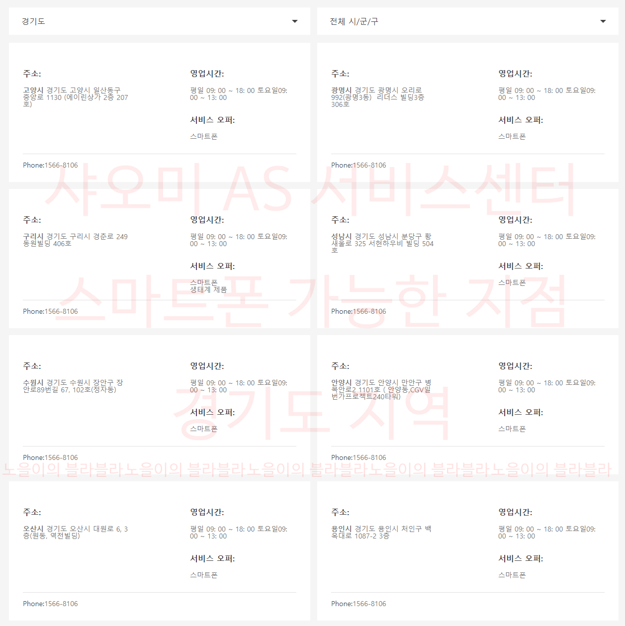 전국에 곳곳에 샤오미 AS센터가 있네요.
