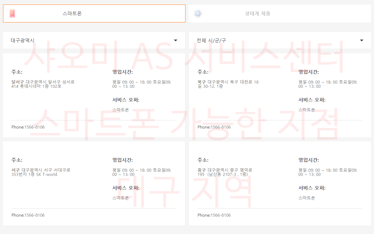 샤오미 AS 서비스센터는 스마트폰만 가능합니다.