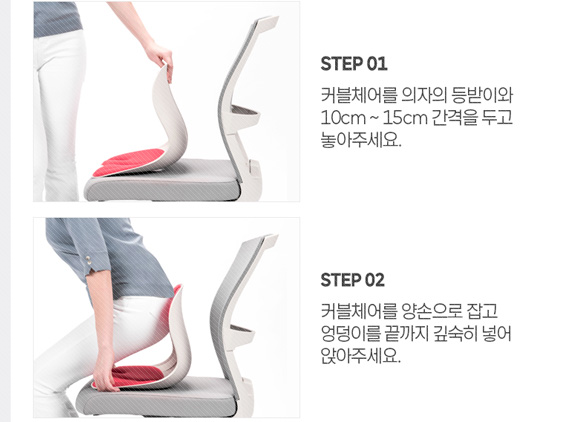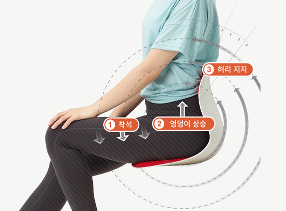 또한 쿠션 있는 부분까지 엉덩이를 대고 앉아야 적당한 힘으로 지렛대 원리가 작용해서 바른 자세가 유지되는데 끝이나 중간에만 앉게 되면 효과가 덜하다고 합니다.