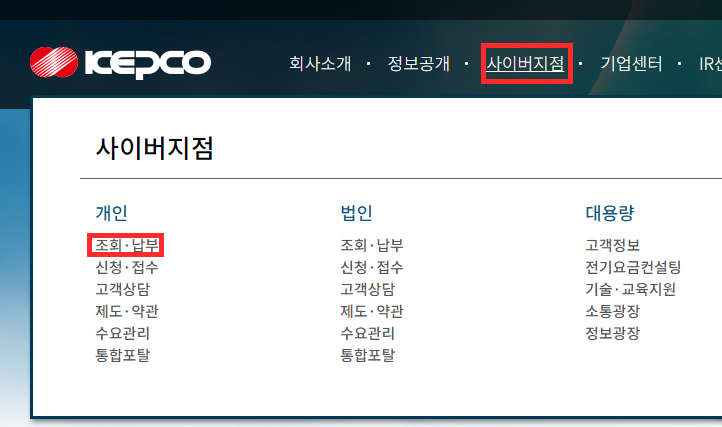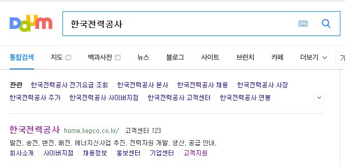 포털사이트에서 한국전력공사를 검색해서 사이트에 들어갑니다.