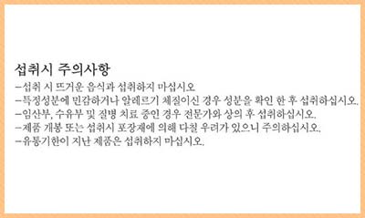 몸에 좋다고 하는 자연추출분말이 18가지 이상이 들어있기 때문에 효능이 효과적일 수 있지만 반대로 부작용을 겪지 않기 위해서는 평소에 위와 장이 예민하신 분이나, 한방 성분에 민감하시다면 반드시 성분 구성을 꼼꼼히 확인해보셔서 나에게 맞지 않았던 성분이 있다면 전문의에게 상담하신 후에 드시는 것이 좋겠습니다.
