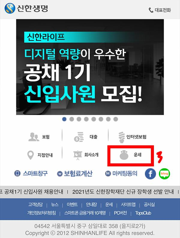 신한생명 사이트에서 오른쪽 하단에 위치한
