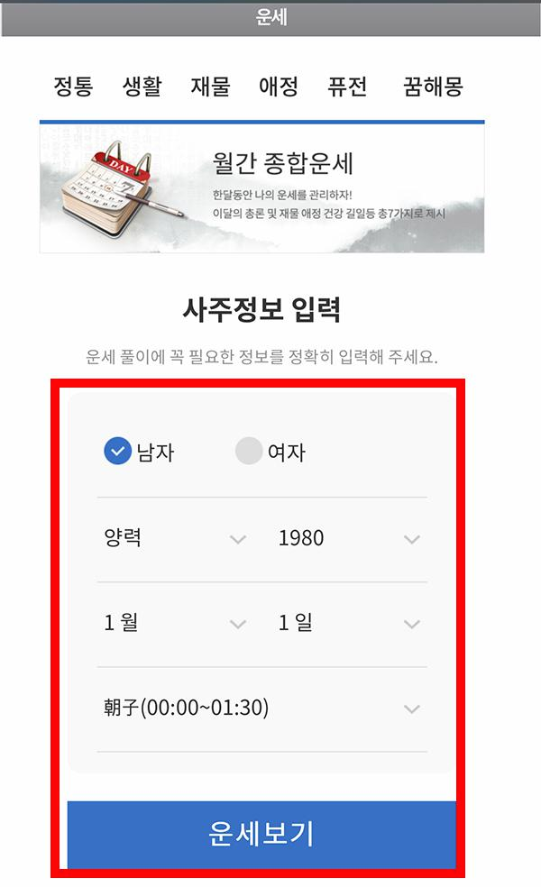 2021 무료 토정비결 운세 핸드폰으로 보는 방법
