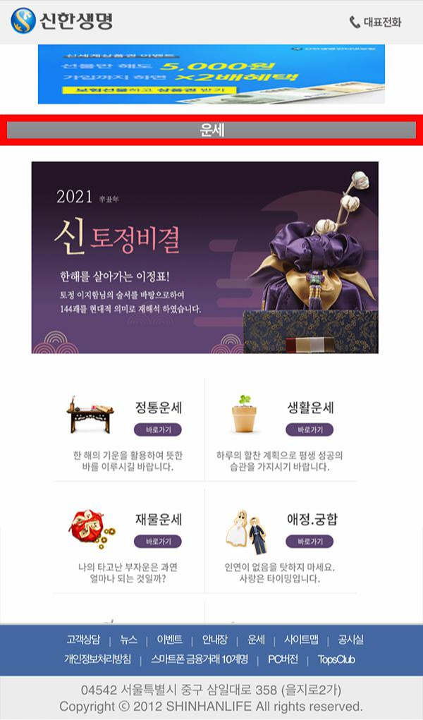 정통운세, 생활 속 운세, 재물 관련 운세와